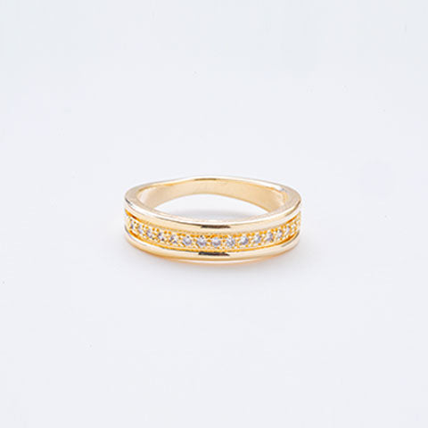 Anel em peça única com uma fileira de zirconia e duas fileiras lisas nas pontas, muito lindo, dá impressão de ser um aparador com banho de ouro 18 quilates.