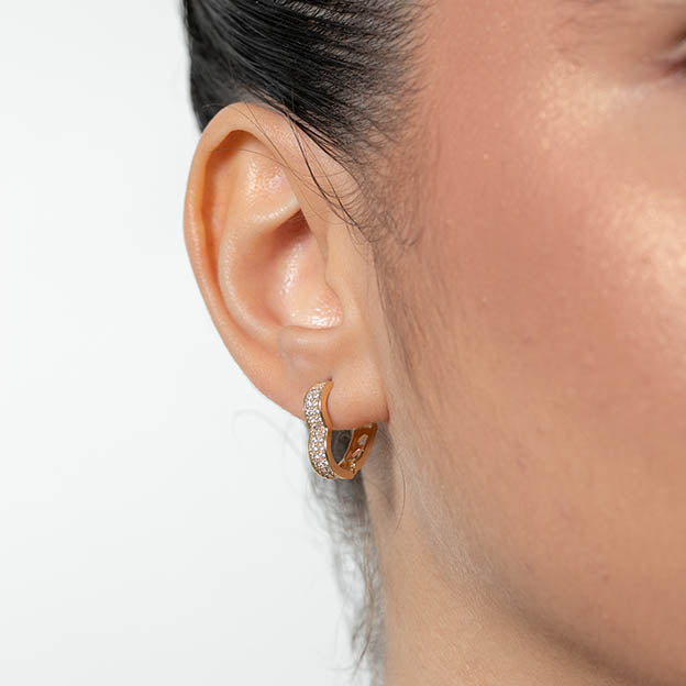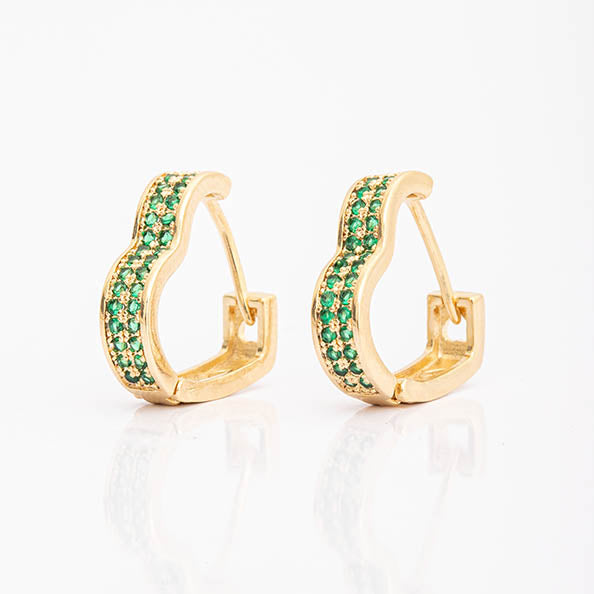Argola em formato coracao cravejado em zirconia M, Folheado a ouro 18k com garantia no banho de 1 ano.