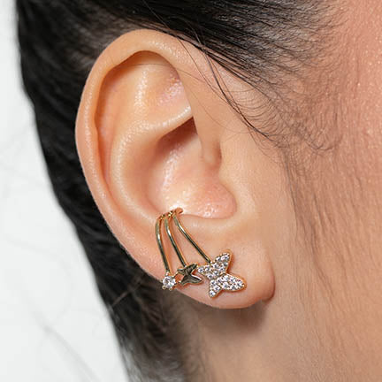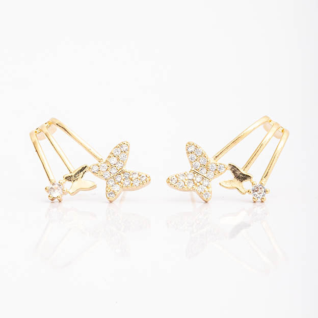 Brinco Voltas Borboletas Zirconia Cristal