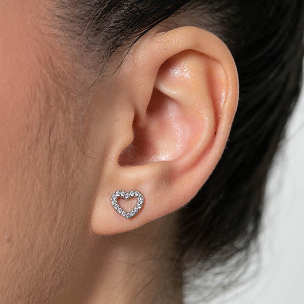 Brinco Coracao Zirconia Cravejado Cristal P, Folheado no rodio com Garantia no Banho de 1 ano.