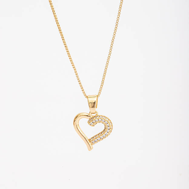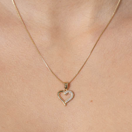 Colar coracao metade cravejado de zirconia, Folheado em ouro 18k com garantia no banho de 1 ano.