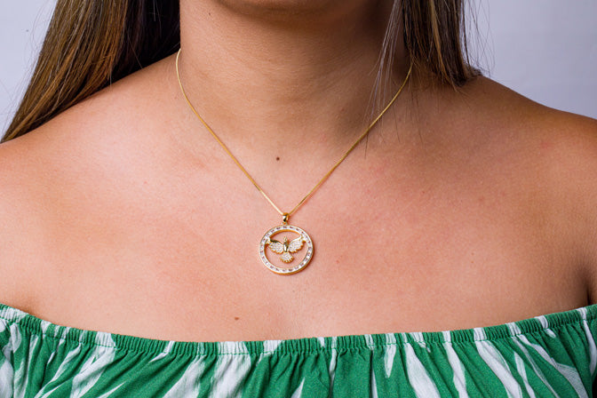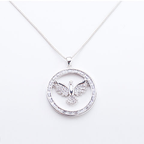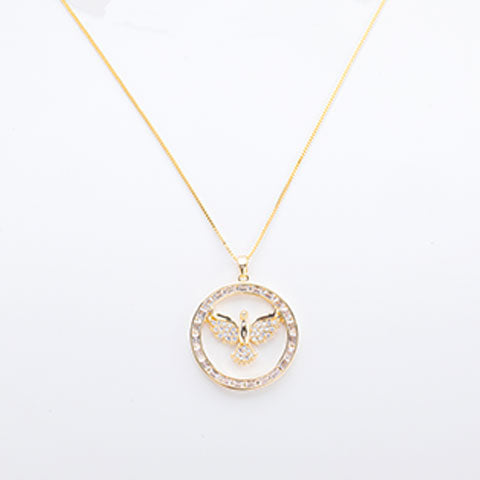 Colar com Pingente cravejado de zirconia com imagem do espírito santo montado em corrente com banho de ouro 18 quilate ou banho de ródio, escolha a sua opção prateado ou dourado.