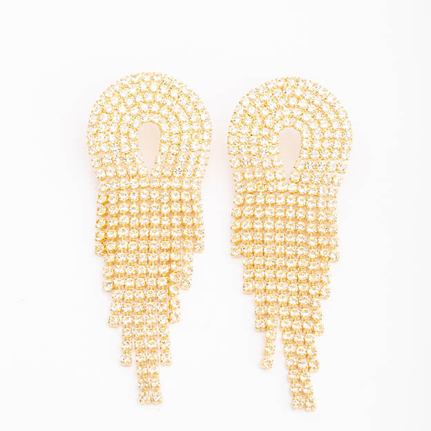 Brinco franja dourado todo em zirconia e folheado a ouro 18K com garantia de 1 ano no banho.