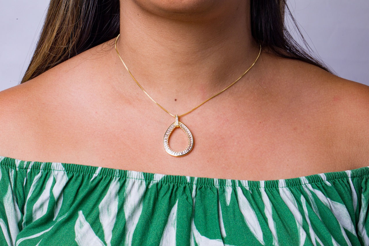 Colar Gota Cravejado de Zirconia Folheado